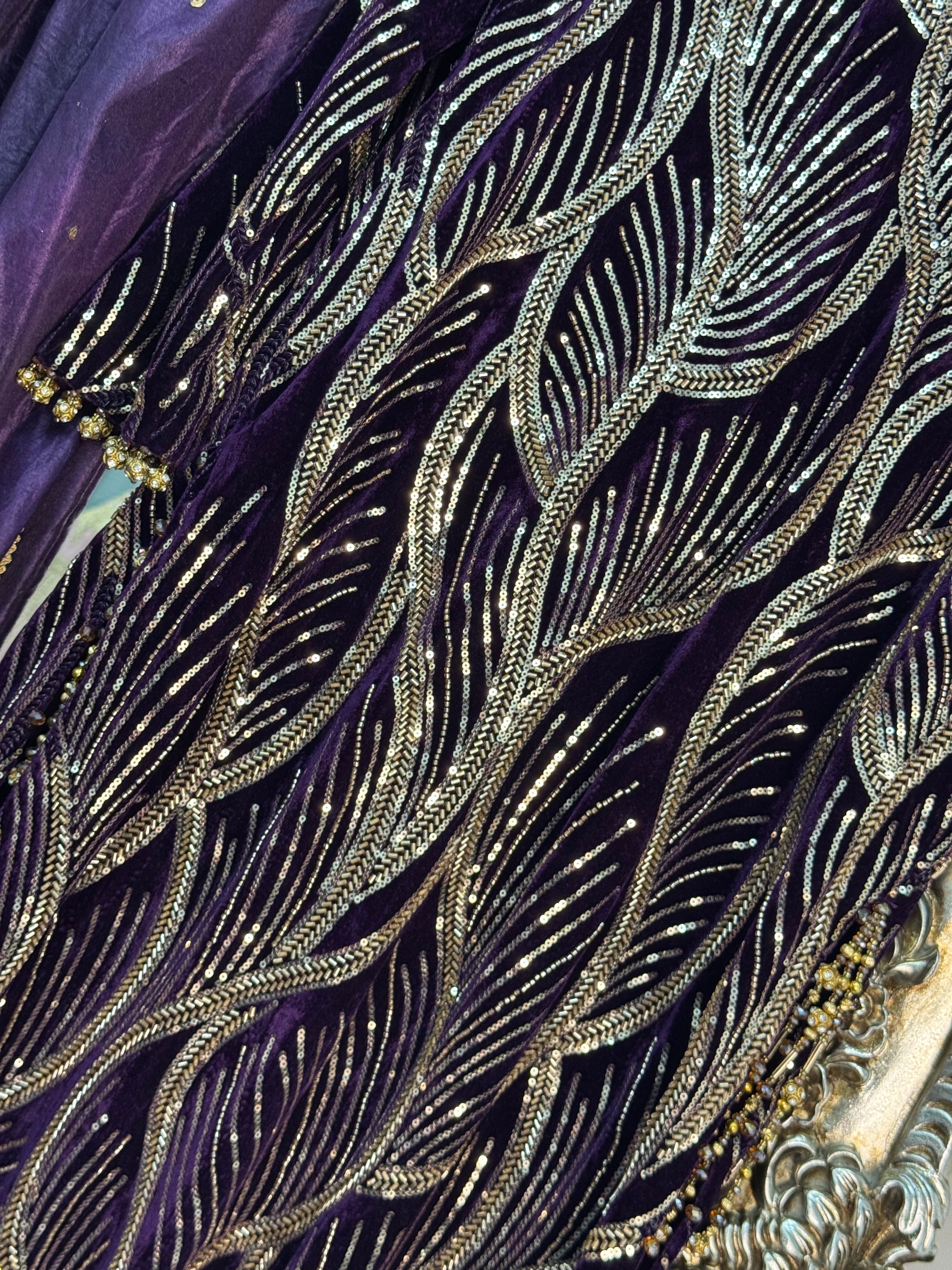 Introducing a stunning velvet shirt adorned with intricate heavy cutdana embellishments.
